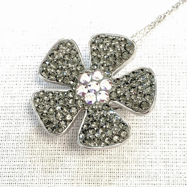34/ シルバー3wayフラワーブローチデコベース