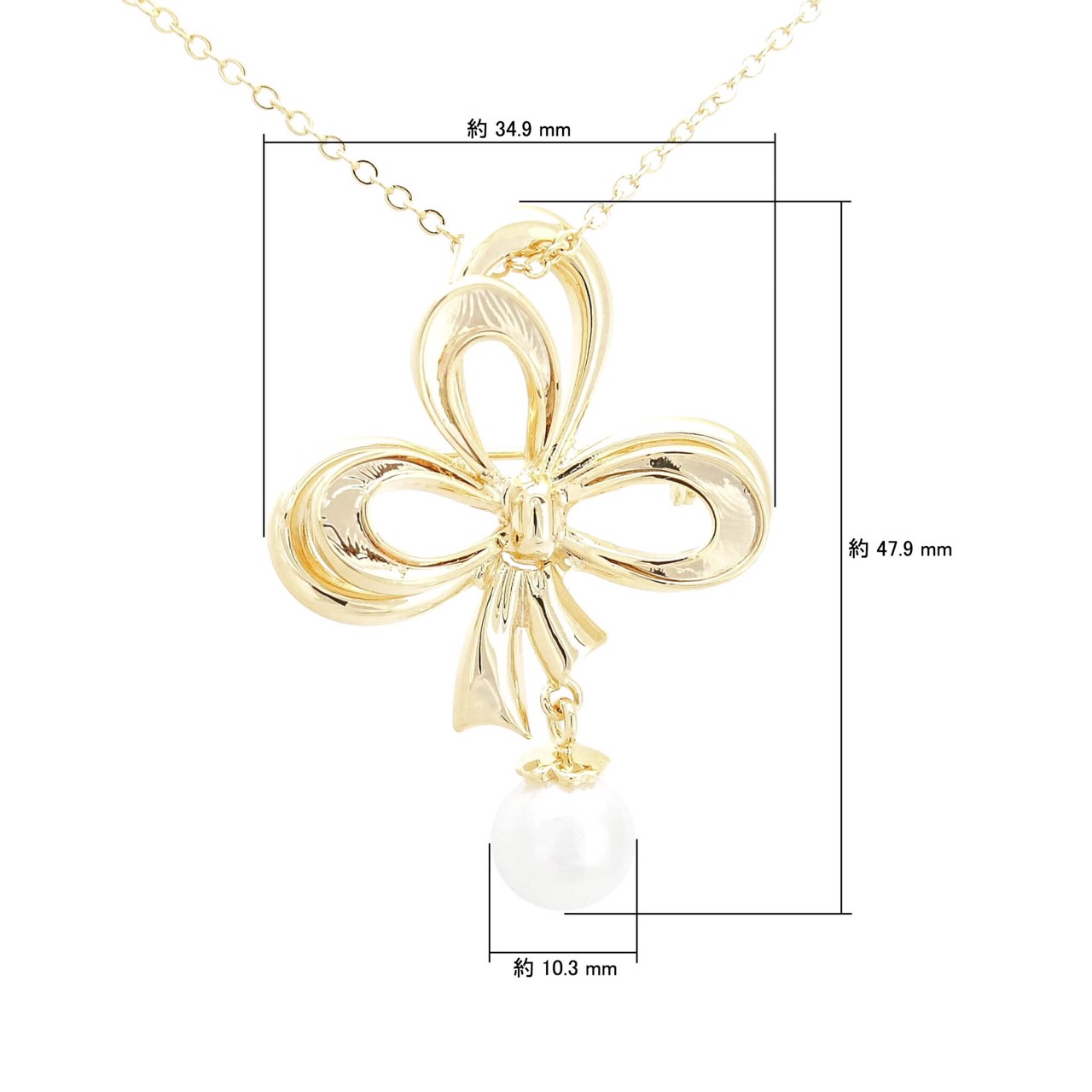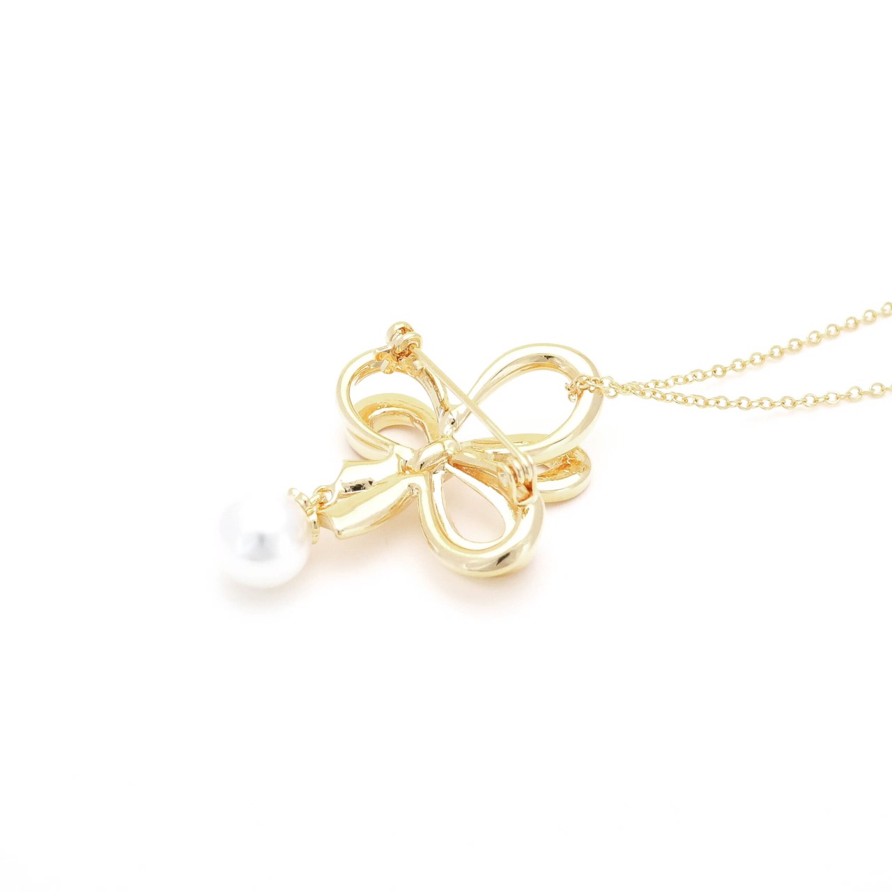 122/ ゴールド2wayリボンパールブローチ&ネックレスNFデコベース