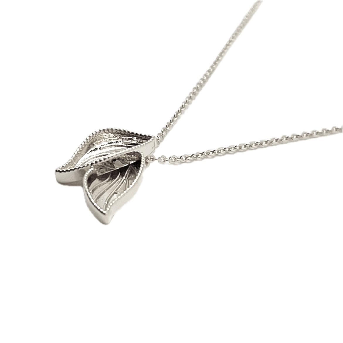 409/ シルバーダブルリーフネックレス グルーデコ土台 デコベース