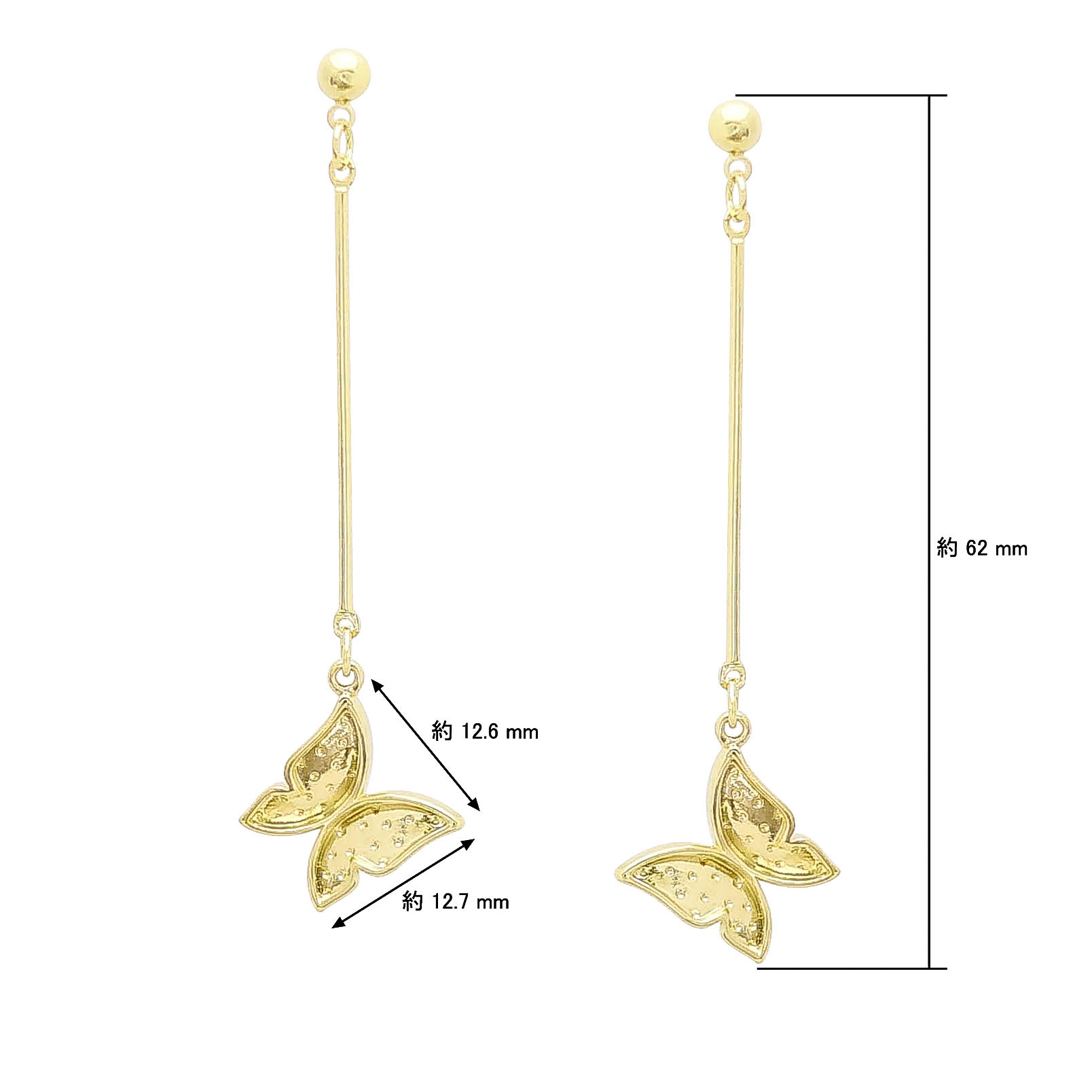 317/ ゴールド揺れるバタフライピアスNFデコベース